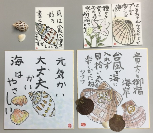 花水木絵手紙教室 色紙に貝 Nonkoの絵手紙便り